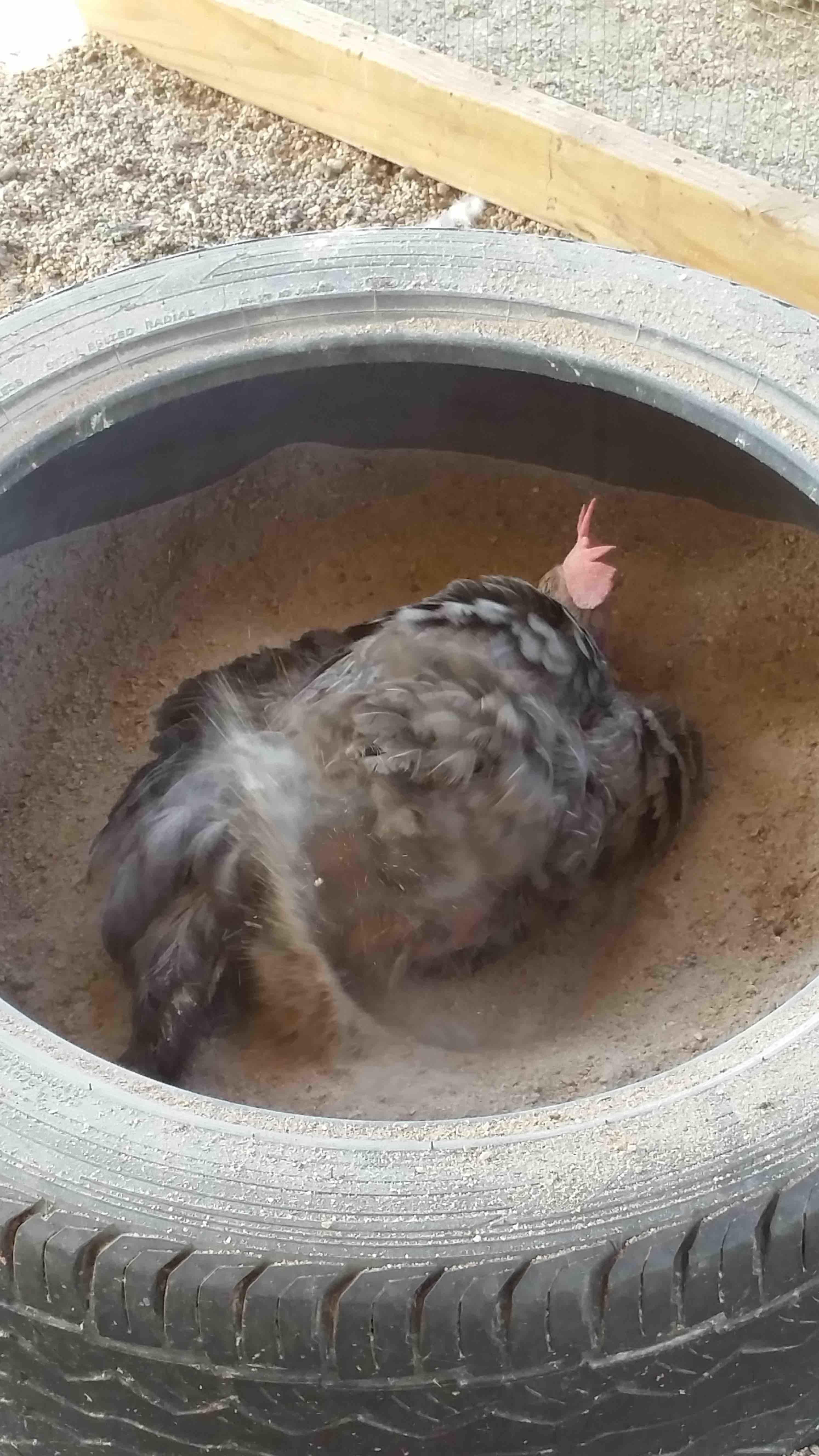 If you’re new to chicken keeping and see them flopping in a dirt hole, kicking it all over their back, twisting their head awkwardly … it’s probably just a dust bath.