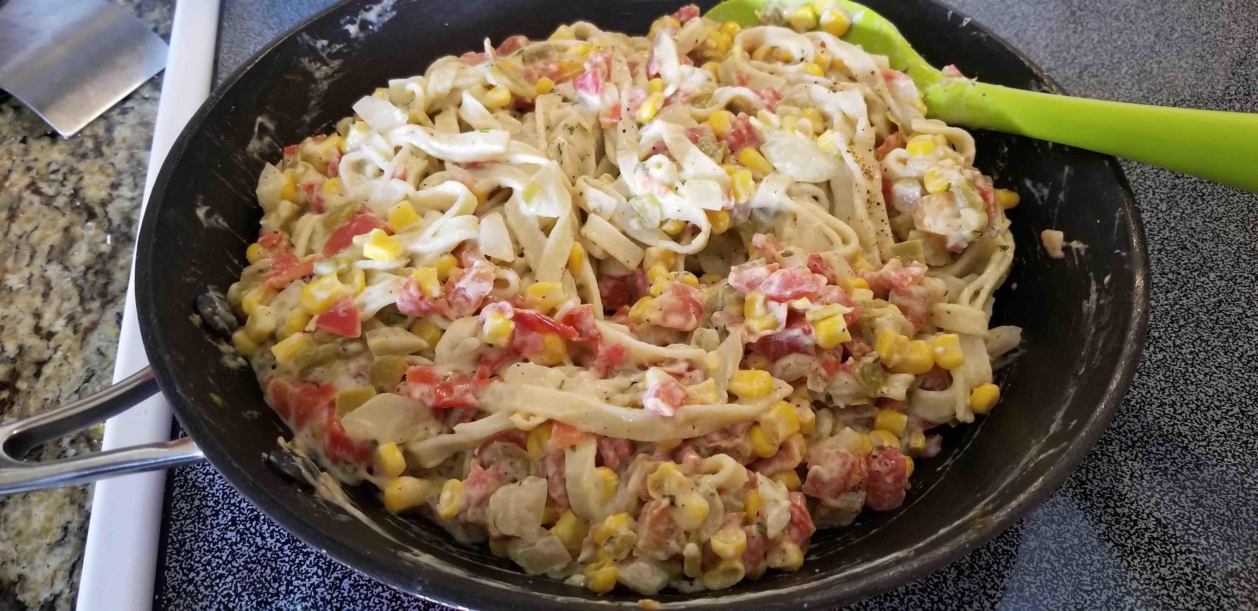 Like the other night, we used the almond flour fettuccine, and we made it Southwest.