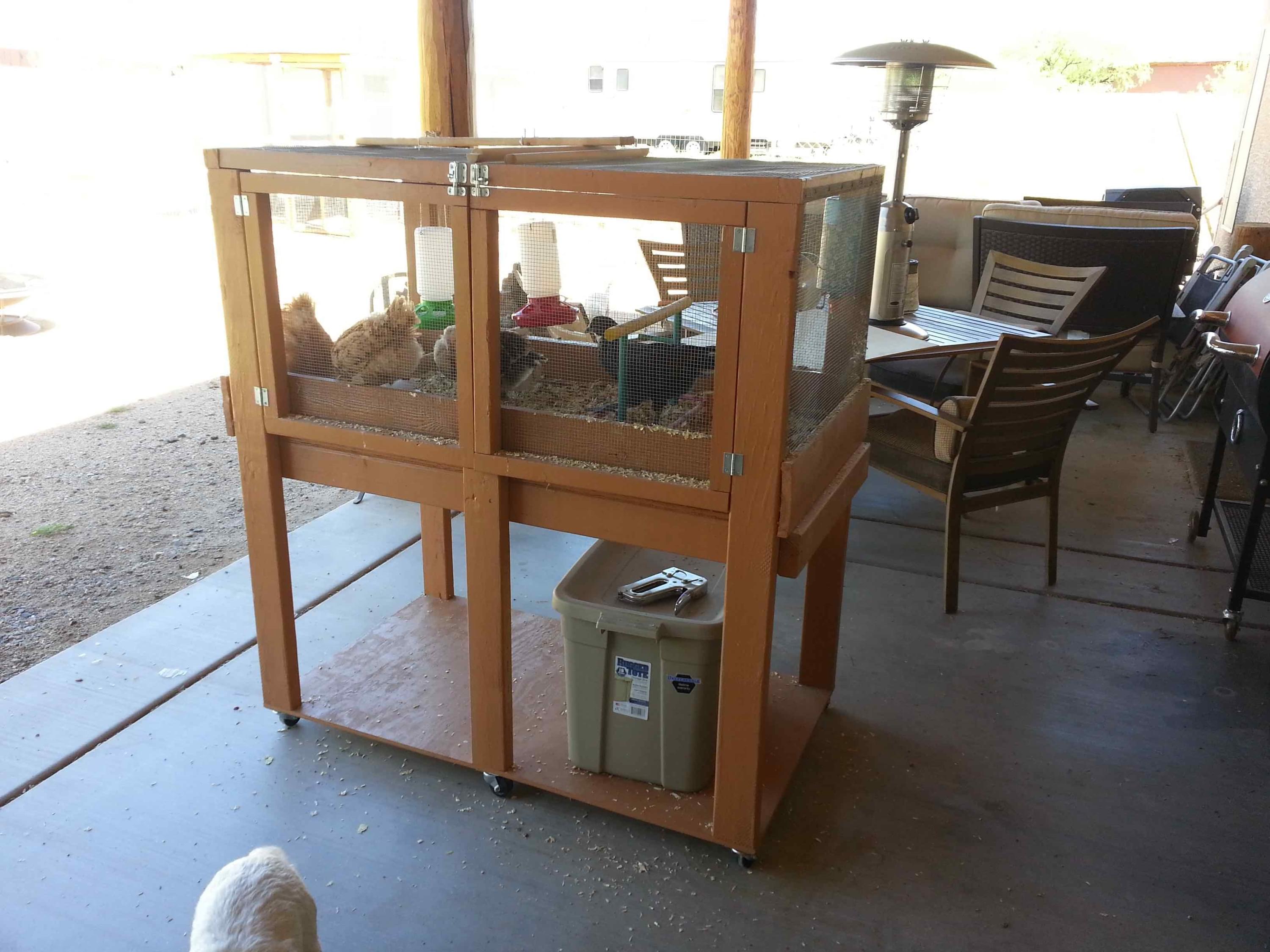 The brooder box is on wheels so I can easily move it outside or inside depending on the temperature outside.